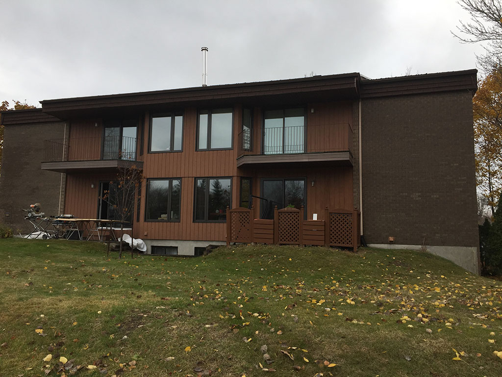 Remplacement des portes et fenêtres, nouvelle toiture, nouveau soffite et fascia.